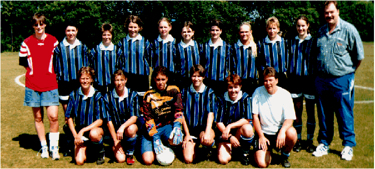 Hintere Reihe: Claudia Seidler, Nicole Bunzel, Daniela Bauer, Verena Fiene, Daniela Pompe, Jolanthe Ketzler, Steffi Gaus, Mylene Pfeng, Steffi Krause, Silke Burose, Trainer Roy Kuske